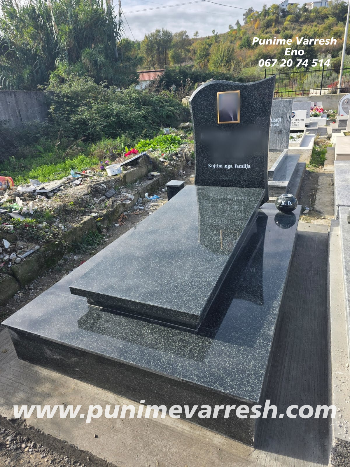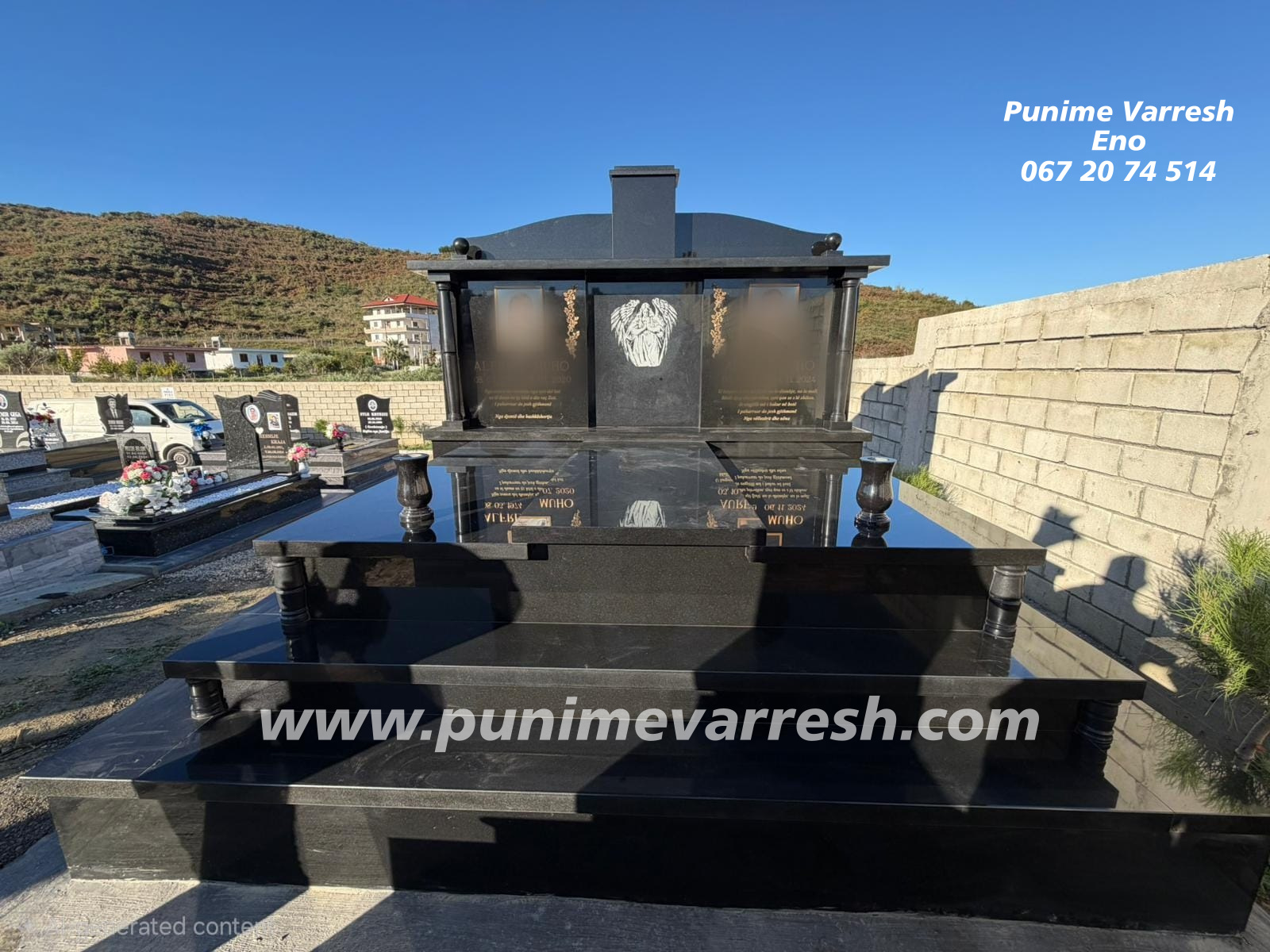 Varr me Portret te gdhendur ne kembe ne granit te zi , me permasa te ndryshme.